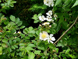 新緑の中で咲く「モッコウバラ」。