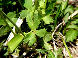 花びらがカタバミの形と異なります。 葉はカタバミと同じ三つ葉です。 |