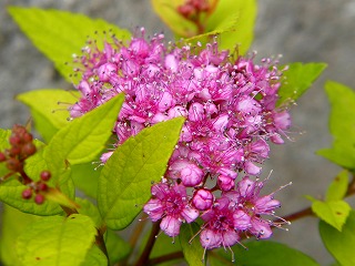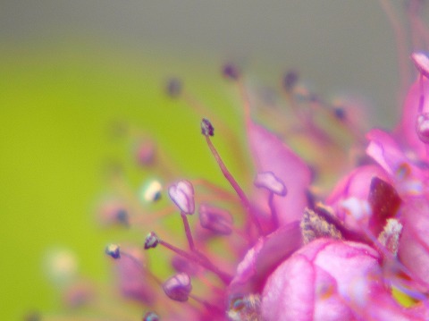 散歩道に1センチくらいのピンクの球状をした咲き始めの花が咲いていました。