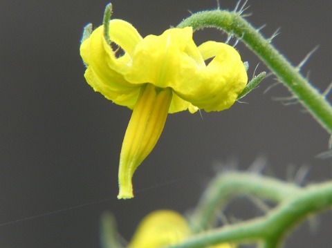 今の時期黄色いトマトの花がたくさん咲いています。でも雄しべと雌しべが見