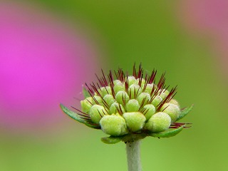 花びらに見える部分は萼のようです。 苞と呼ばれる糸状の葉がツボミを包む。 |