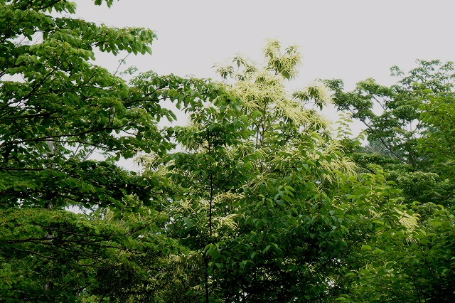 樹木の上の方に白い花房がたくさん咲いていました。調べてみると栗の木