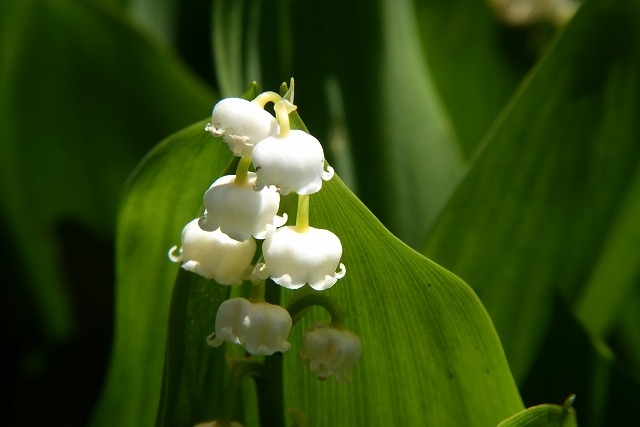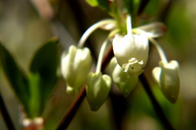 花は白色、釣鐘状に下向きに咲く。 |