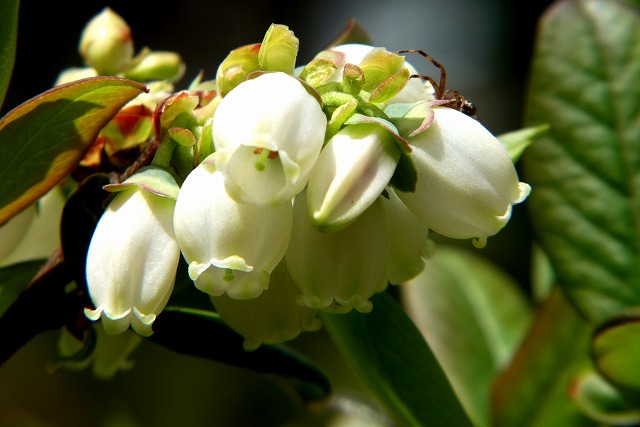 夏に美味しい実が生る「ブルーベリー」の花です。花だけ見ると「ドウダンツツジ」にそっくりです。
