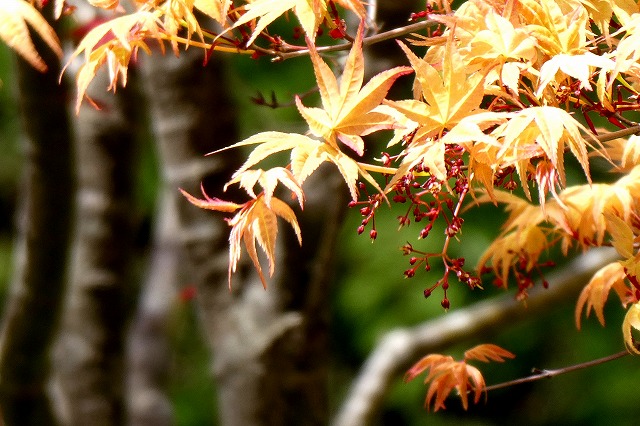 若葉が赤く、のちに緑、秋に紅葉します。 |