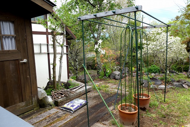 連休明けに「ミニトマト」の苗を購入予定で、棚を組み立てました。
