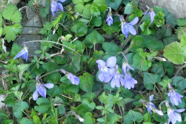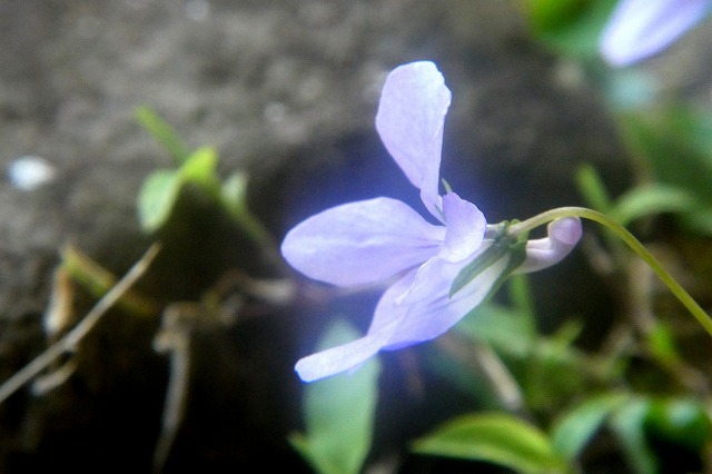 「スミレ」の種類は多くあり、この花は薄青で日陰に咲いていました。