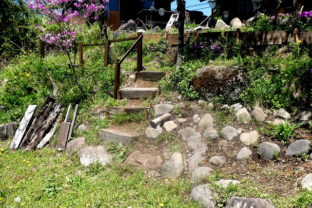 河川敷に下りる階段が3つありますが、一個が台風で下の方が崩壊したため、傷んでいた真ん中の階段を修復しました。