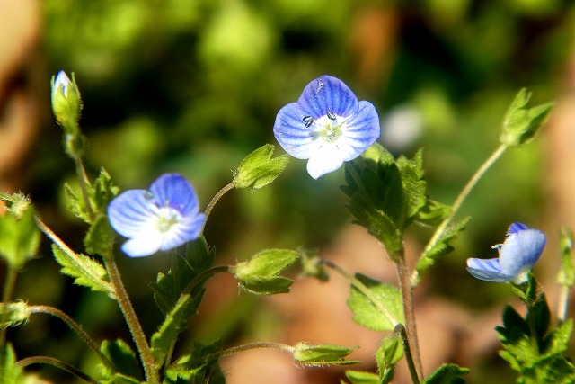 道ばたや庭などに咲くことが多い。高さ15〜30cm直径約2~3mmの小さな淡青紫色の花を次々と咲かせる。