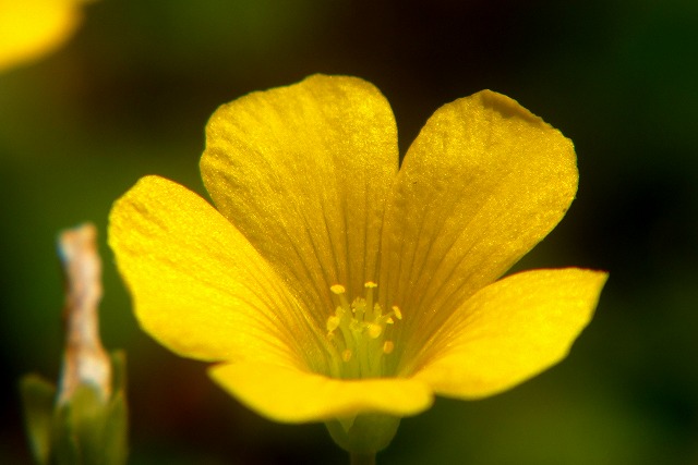 花の直径は4センチほど、黄色い花弁は5枚。 |