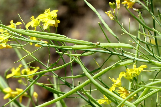 日当たりのよい河川敷の斜面や草地に咲き、黄色い花びらは4枚で縮れている。