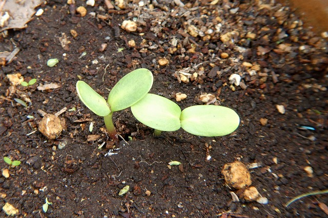 砂利の中で発芽して芽を出す。 (5月25日 撮影)