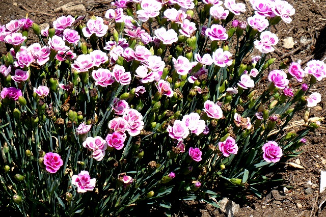八重のダイアンサス(ナデシコ)が綺麗に咲いていました。