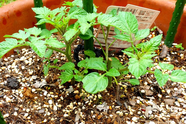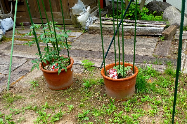 同じ日に植えたトマトの苗、生育に大きく差が付いてしまいました。