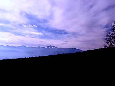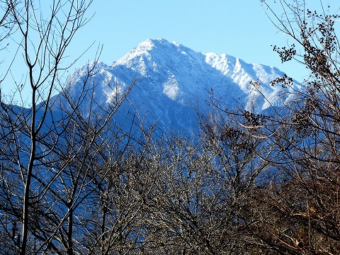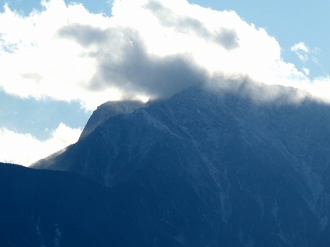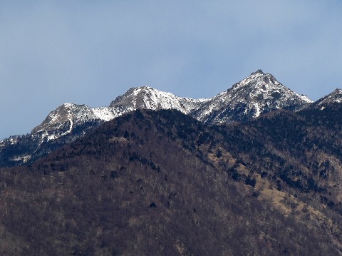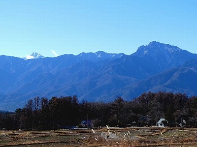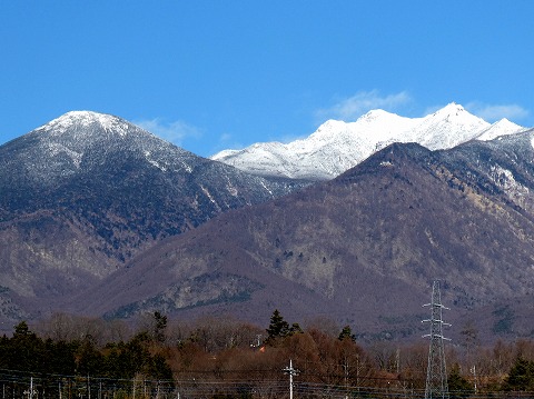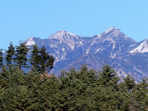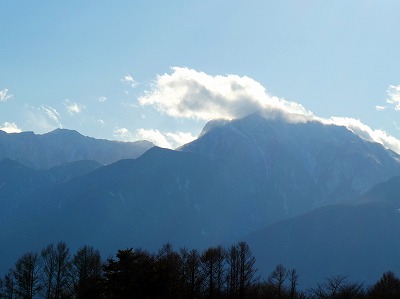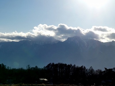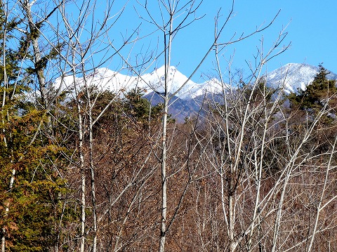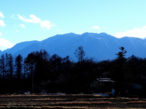| 山景色は太陽の位置によって写り方がまったく違ってきます。今日も午後になっての写真で、甲斐駒は逆光になり雪を戴いた姿は撮れていません。 |