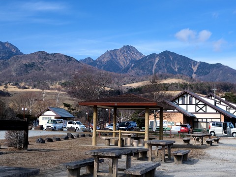 | 八ヶ岳高原ライン沿いの「まきば公園」12月に雪がない赤岳も珍しいのではないでしょうか! |