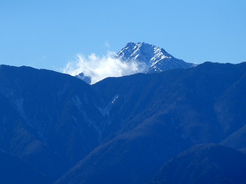 | 北岳から甲斐駒まで長い笠雲の様な雲が浮んでいました。 |