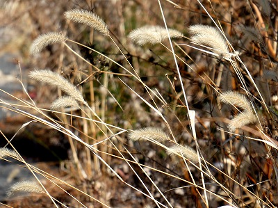 | 道端にエノコログサの枯れ穂が沢山なびいていました。 |