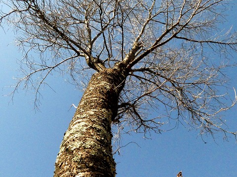 | 澄み切った青空に白樺3本、八ヶ岳を引き立てています。 |