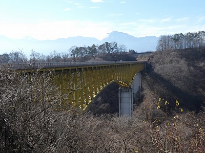 | 八ヶ岳高原大橋からの八ヶ岳ですが、最高峰の赤岳にも雪がまったくありませんでした。 |
