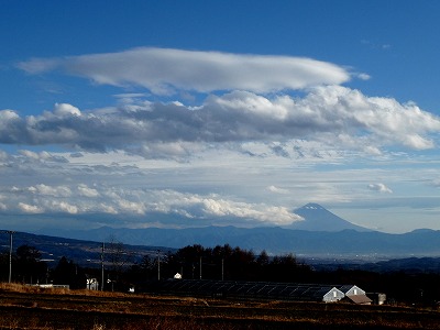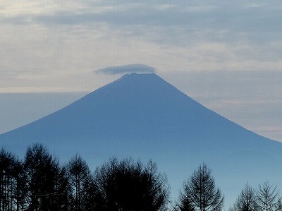 | 富士山は見えませんでしたが、茅ヶ岳の上には笠雲?が浮んでいました。 |