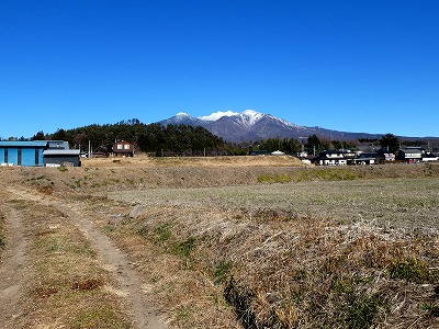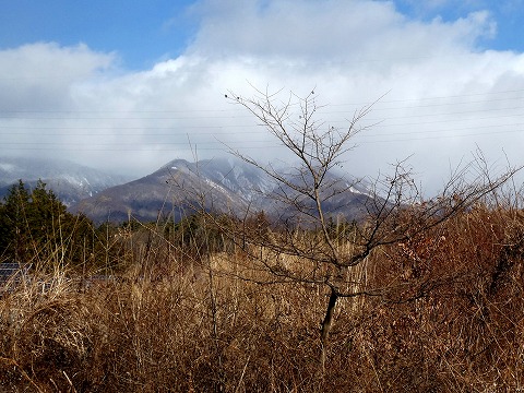 今朝の最低気温は氷点下5.8度と冷え込みました。10時位になり0度まで上がって来ましたので、最後の定点観測のような三分一湧水公園近くの畑の中から山の様子を撮って来ました。