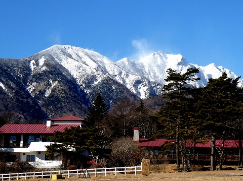八ヶ岳では先日降った大雪で権現岳が真っ白に輝いていました。