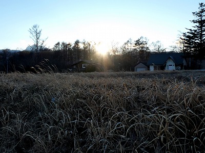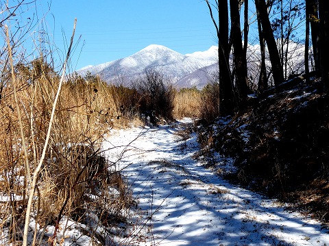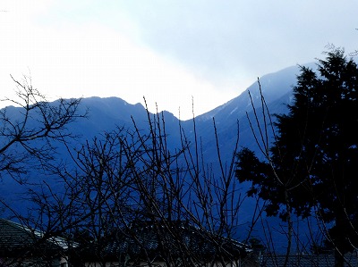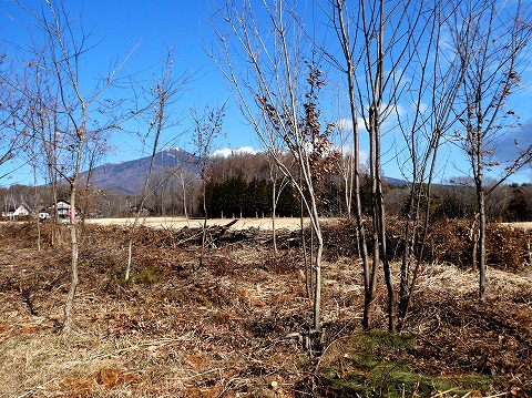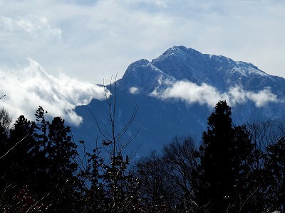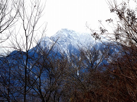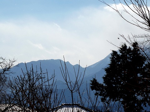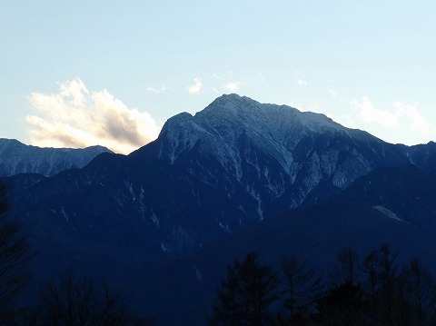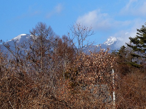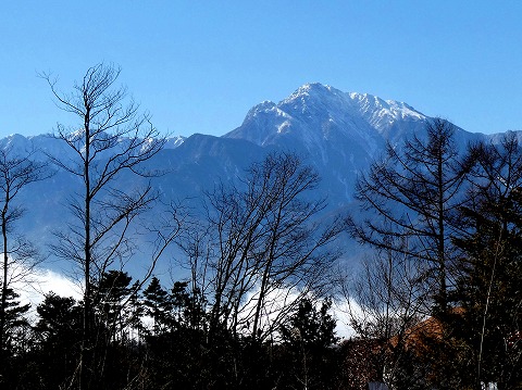 樹木の先は薄雲でうっすら甲斐駒が見えています。