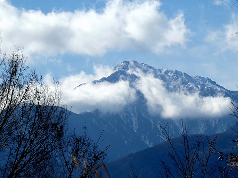 北岳、甲斐駒は全山真っ白になり低い雲が浮んでいました。