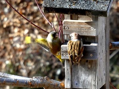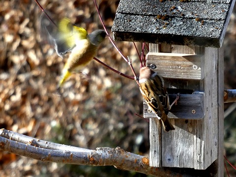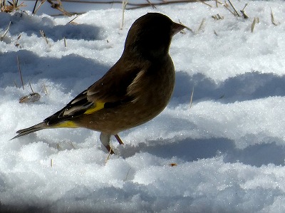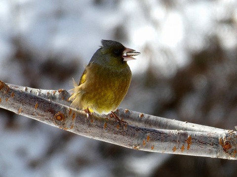 雨の日も雪の日もカワラヒワは休まず姿を見せます。