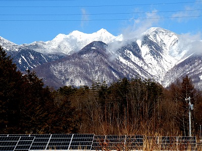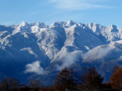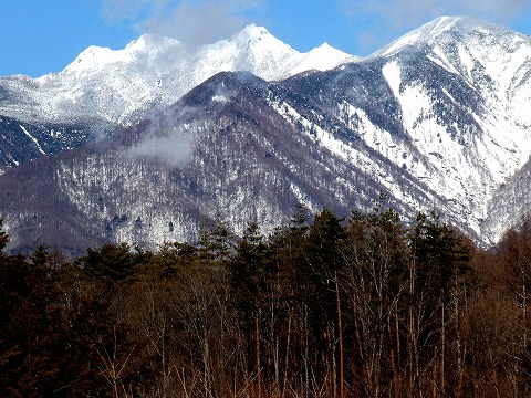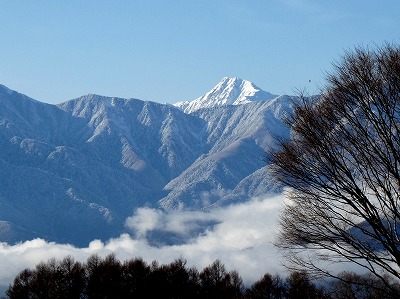 南アルプス連峰は全山真っ白に雪化粧して甲斐駒ヶ岳がひときわ目立っていました。