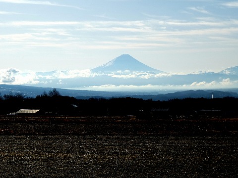 午前中の富士山は逆光気味でしたが、雲が水平に二段浮んでいました。