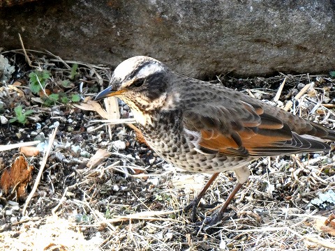ツグミは冬鳥の代表的な鳥と言われていますが、初めて見たような気がします。一見地味な印象の鳥ですが、胸には斑模様、羽根には橙色が見られ個性的な美しさがあります