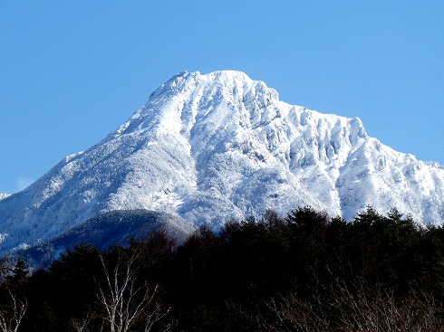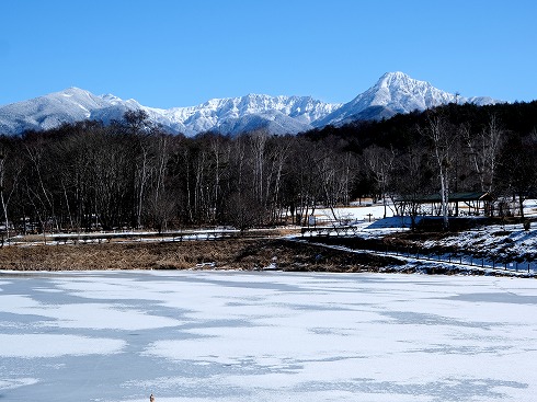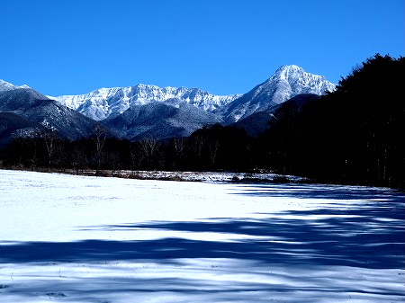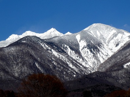 | 八ヶ岳は青空に白銀の峰峰がくっきり見えていました。 |