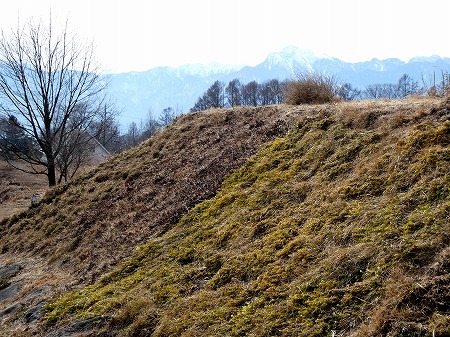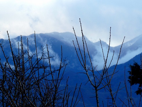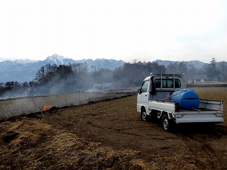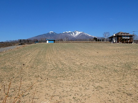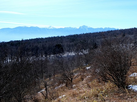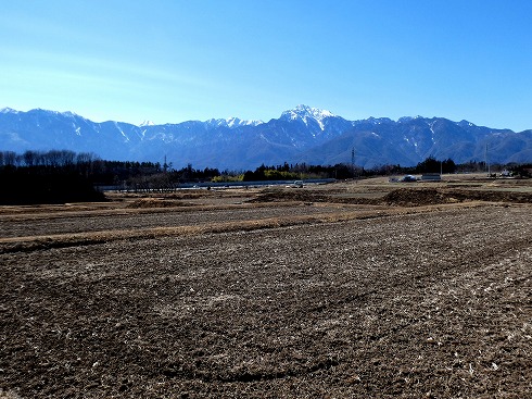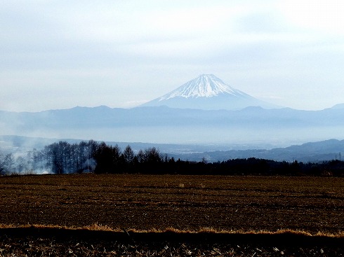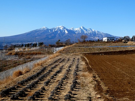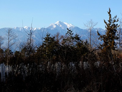 | 冬の畑から見えた甲斐駒ヶ岳はもやで霞んでいました。 |