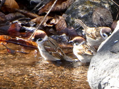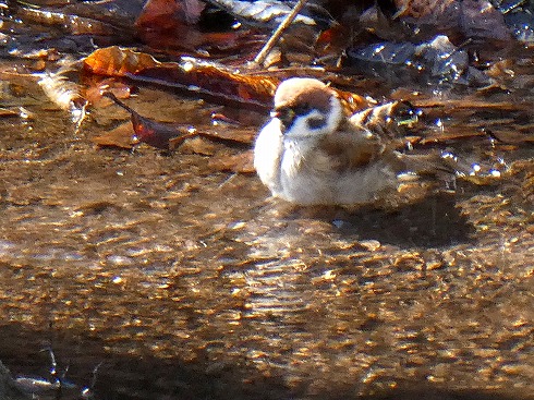 | 魚を探しているようにも見えませんがスズメも水の中に入っていました。 |