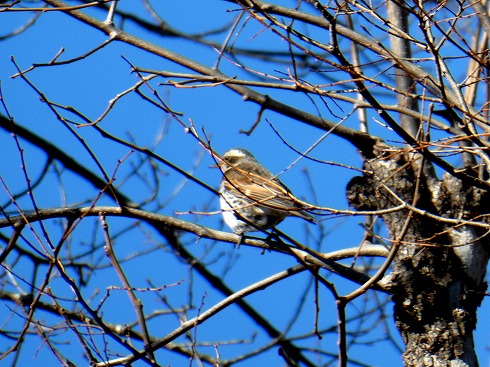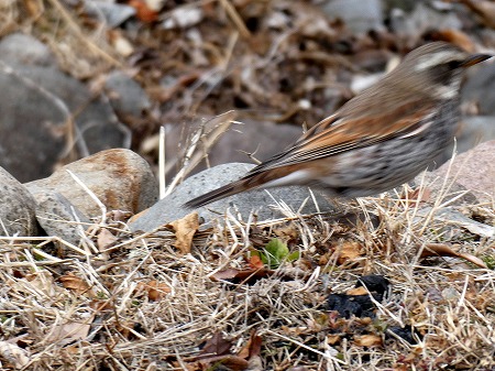 | 写真素材がないかと河川敷を探していたところ突然ツグミが横切りました。 |