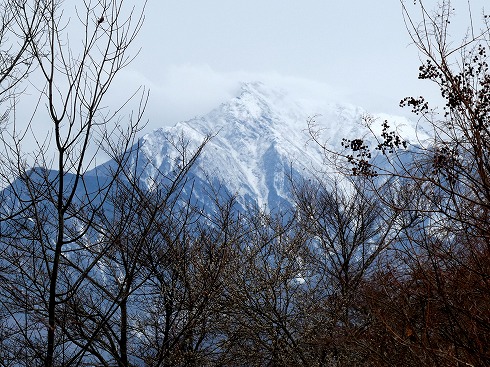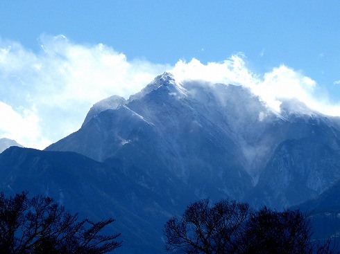 | 今日の甲斐駒は強風で雪煙が上がっているように見えました。 |