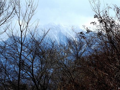 | 逆光ですが強風で何時もより山肌が良く見えています。 |