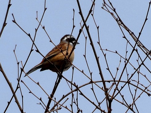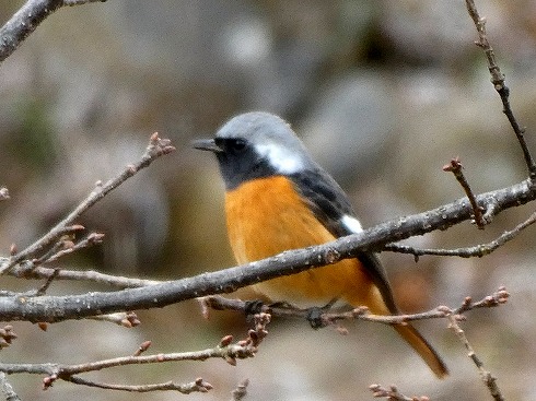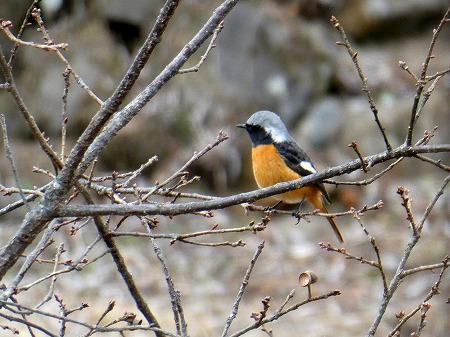 | 目立つオレンジ色のお腹、頭はグレーで顔は真っ黒、翼には白斑がありました。河川敷で初めて見たような気がします。 |