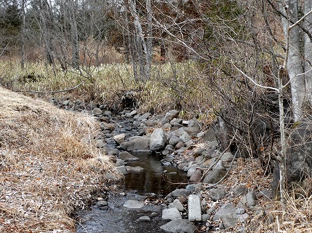 | 川の縁に生える青い(緑)ものといえば今の時期は隈笹くらいです。 |