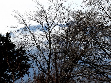 | 富士山方向はスッキリした青空ではありませんでしたが、樹木越しに写してみました。 |