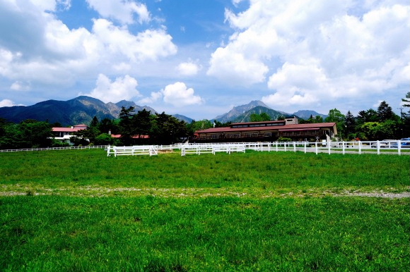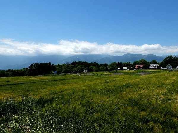 今日の清泉寮は牧草地の緑が映え、八ヶ岳は雲が舞い上がり、標高1,400mの初夏の景色でした。