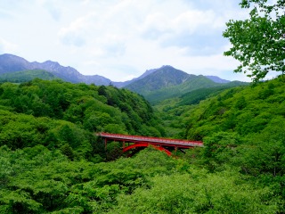 美し森の帰りに、八ヶ岳高原ライン沿いの「赤い橋」は、深い緑のなかに浮かび上がっていました。