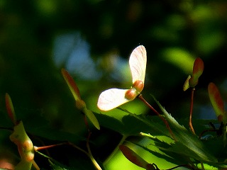 初夏、カエデの木を見上げると、プロペラに実を付けていました。