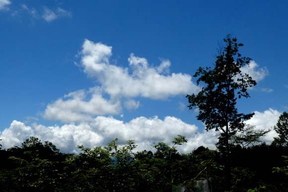 今日は久し振りに澄みきった青空でしたが、散歩に出ると、山の上は雲が多くありました。