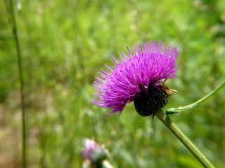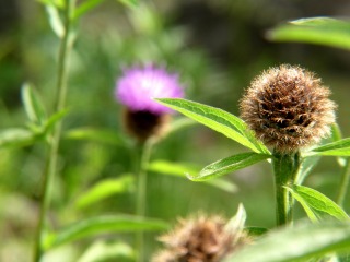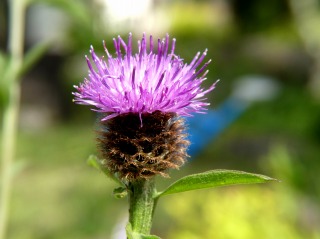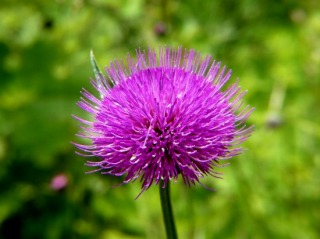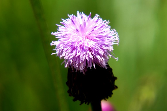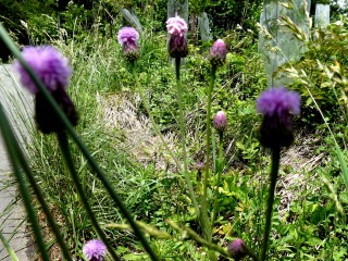 散歩道の脇に長い花茎を伸ばした径が1センチほどのアザミに似た花が咲いていました。