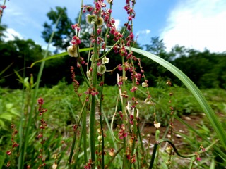道端に細い茎を伸ばし、赤っぽい小さな花が沢山咲いていました。高さ20~50㎝になり、多く枝分かれしています。スイバの葉を噛むと酸味があることから名が付いたようです。