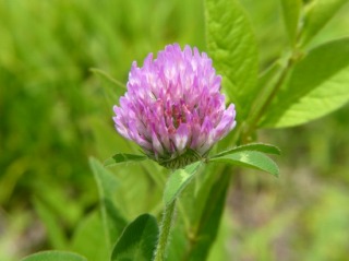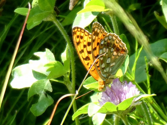 花パーク跡の草地に咲く、アカツメクサにウラギンヒョウモンが吸蜜していました。