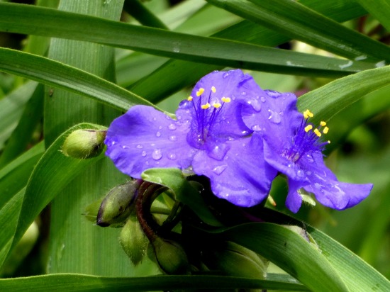 青紫の大きな口を開けたような花が咲いていました。